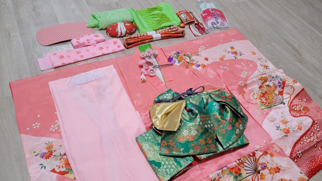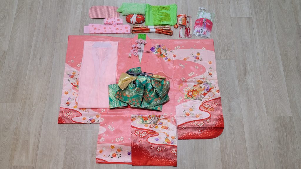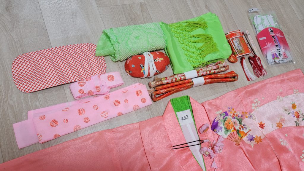 (帯・肌着・小物セット・髪飾り・ファーバッグ・ぞうり等込)